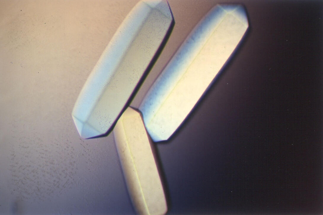 Crystals of fungal lipase protein created for X-ray crystallography, which can reveal detailed, three-dimensional protein structures.