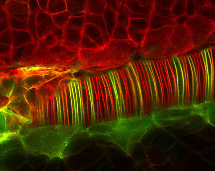 Proteins in the neural tissues of this zebrafish embryo direct cells to line up and form the neural tube, which will become the spinal cord and brain. Studies of zebrafish embryonic development may help pinpoint the underlying cause of common neural tube defects--such as spina bifida--which occur in about 1 in 1,000 newborn children.