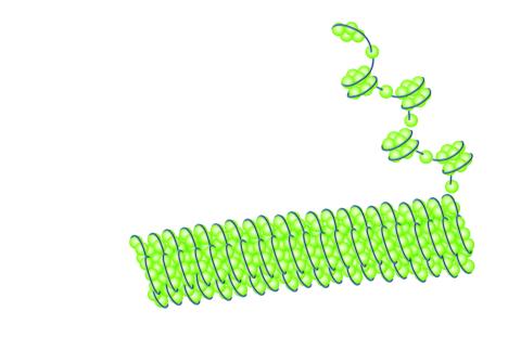 Cilia (cilium in singular) are complex molecular machines found on many of our cells. One component of cilia is the doublet microtubule, a major part of cilia’s skeletons that give them support and shape. This animated image is a partial model of a doublet microtubule’s structure based on cryo-electron microscopy images. Video can be found here 6549.