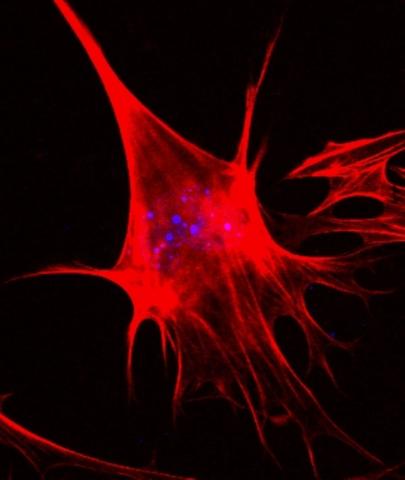 The molecules that glow blue in these cultured cells prevent the expression of the mutant proteins that cause Huntington's disease. Biochemist David Corey and others at UT Southwestern Medical Center designed the molecules to specifically target the genetic repeats that code for harmful proteins in people with Huntington's disese. People with Huntington's disease and similar neurodegenerative disorders often have extra copies of a gene segment. Moving from cell cultures to animals will help researchers further explore the potential of their specially crafted molecule to treat brain disorders. In addition to NIGMS, NIH's National Institute of Neurological Disorders and Stroke and National Institute of Biomedical Imaging and Bioengineering also funded this work.