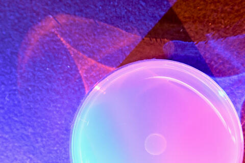 Bioengineers were able to coax bacteria to blink in unison on microfluidic chips. This image shows a small chip with about 500 blinking bacterial colonies or biopixels. Related to images 3265 and 3268. From a UC San Diego news release, "Researchers create living 'neon signs' composed of millions of glowing bacteria."